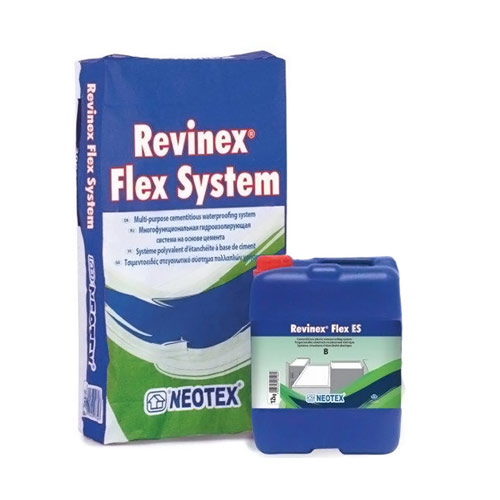Πρέπει απαραίτητα να συνδυαστεί με το Revinex Flex System A Λευκό 25kg Τσιμεντοειδές υγρομονωτικό