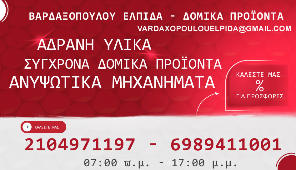 Καλέστε μας για απορίες και διευκρινήσεις και βρείτε άμεσα τα υλικά και τις λύσεις που χρειάζεστε, η εταιρεία καθώς και το καταρτισμένο προσωπικό μας θα διασφαλίσει την άμεση εξυπηρέτηση σας.