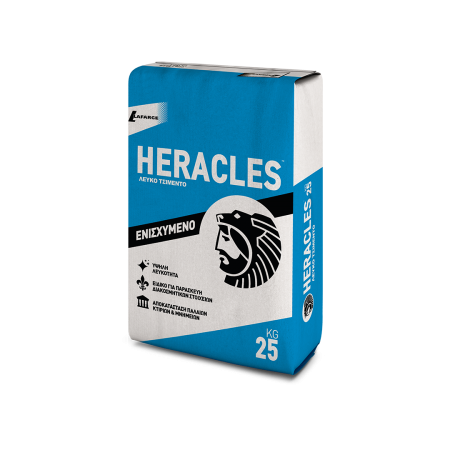 Το HERACLES ΛΕΥΚΟ (CEM I 52,5 R) διατίθεται σε σάκους των 25 κιλών και καλύπτει πλήρως τις απαιτήσεις του προτύπου ΕΛΟΤ EN 197-1.